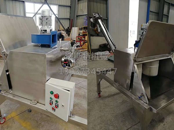 無塵投料站由人工卸料臺、下料倉、振動篩、過濾系統(tǒng)、集塵系統(tǒng)、反吹除塵氣囊等部件組成。