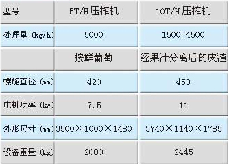 5T/10T雙螺旋壓榨機技術(shù)參數(shù):